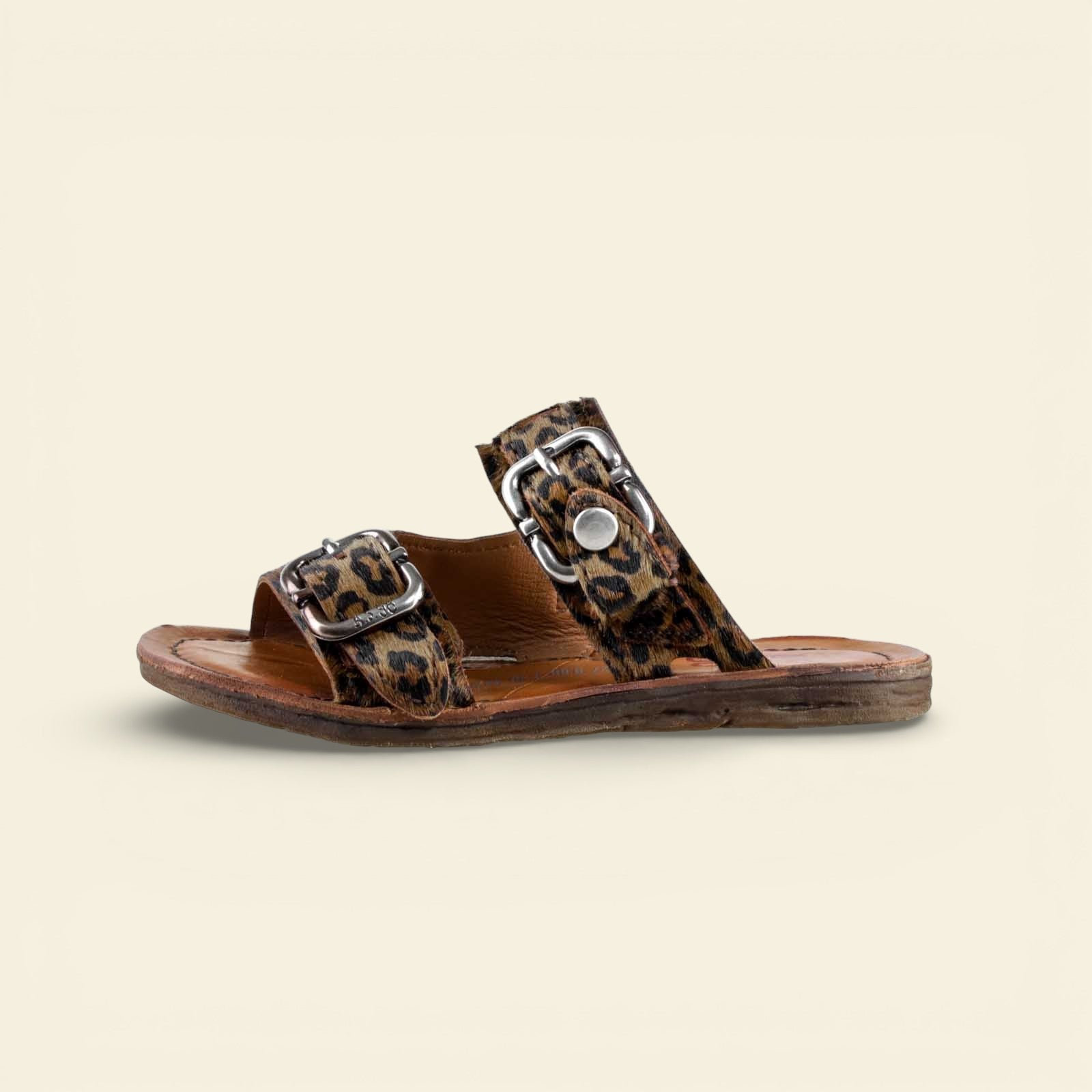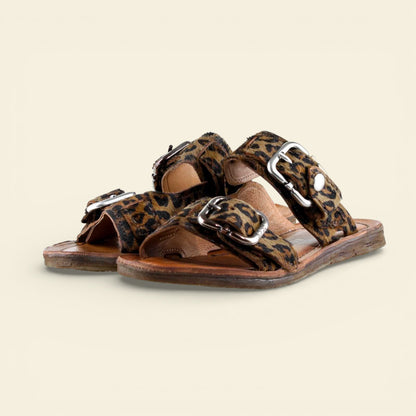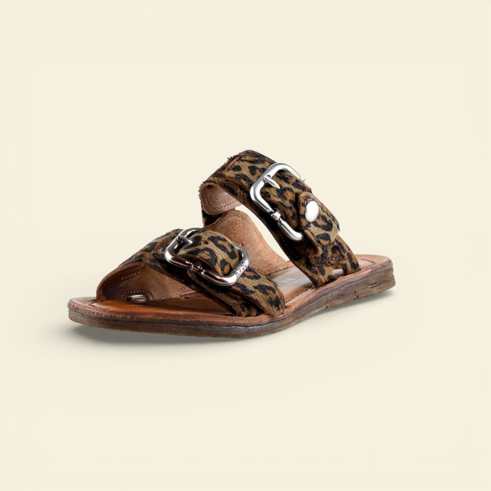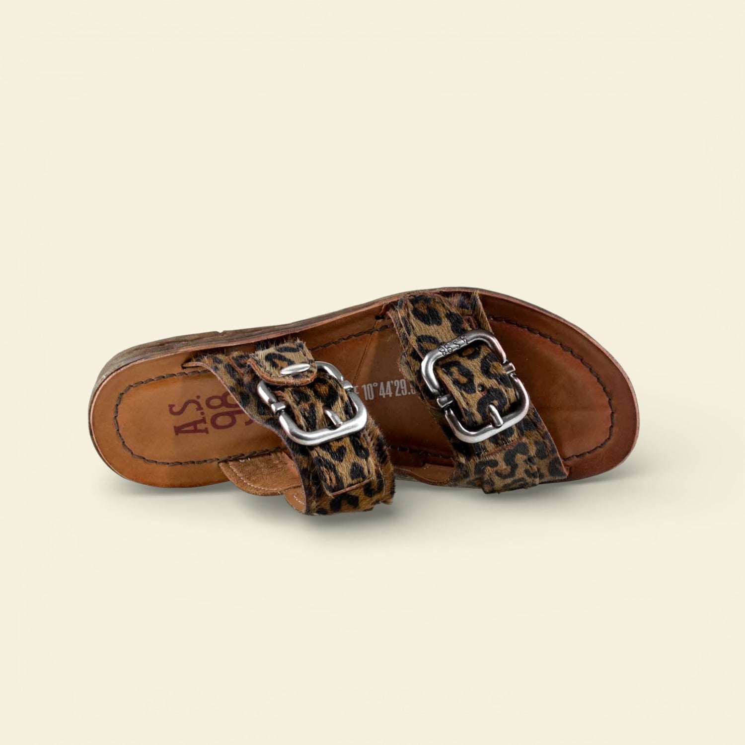 The A.S.98 double-strap flat sandal features a handcrafted leather footbed with two adjustable buckle straps for a secure and comfortable fit. Designed with a low-profile sole and bold hardware details, this style delivers everyday ease with a distinctive edge.