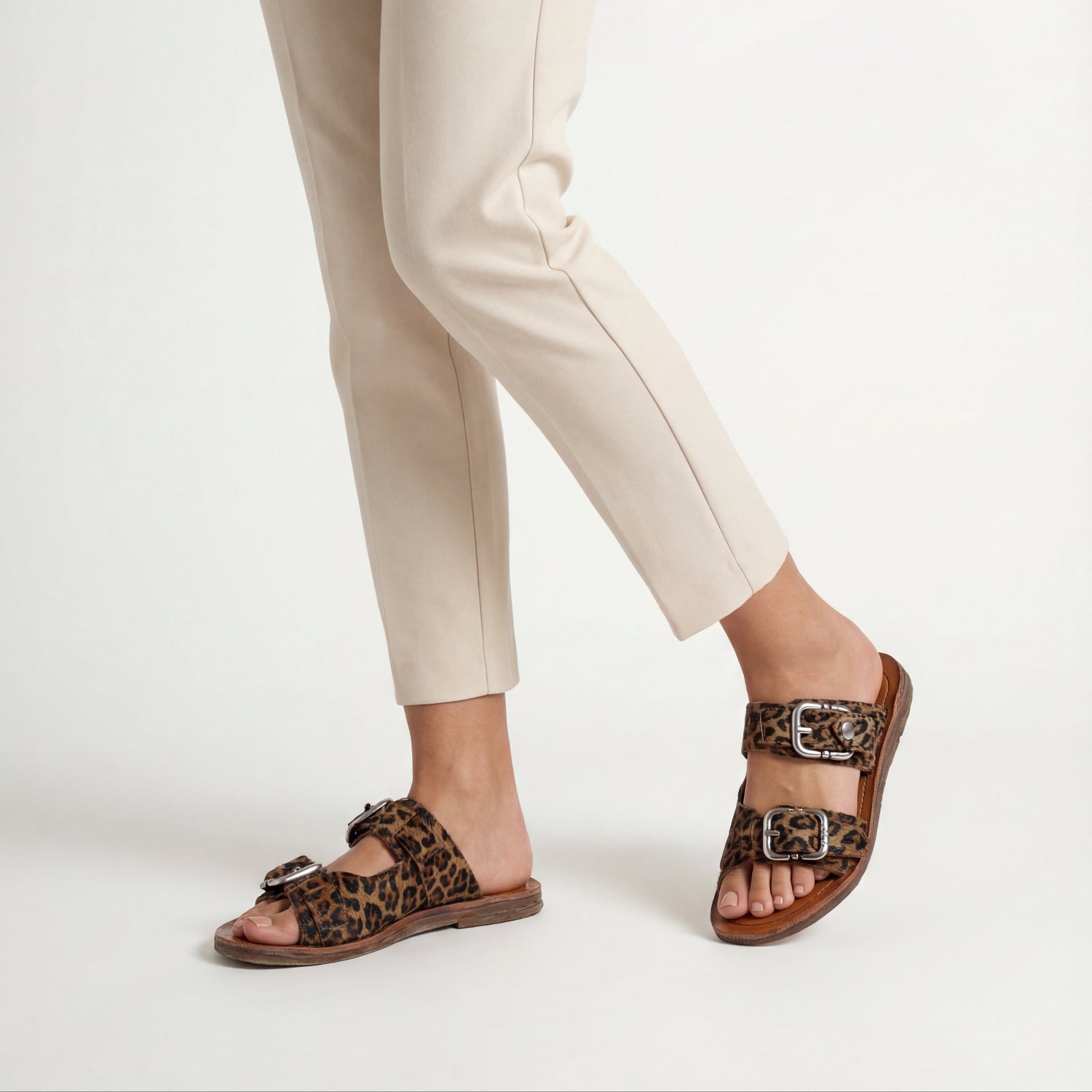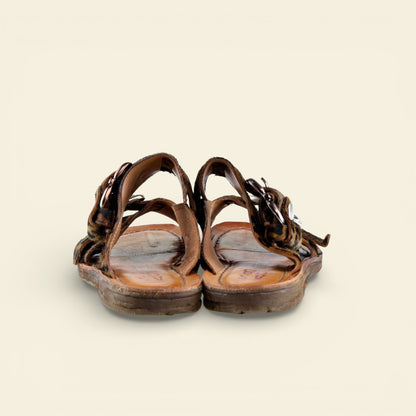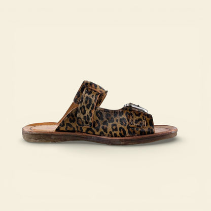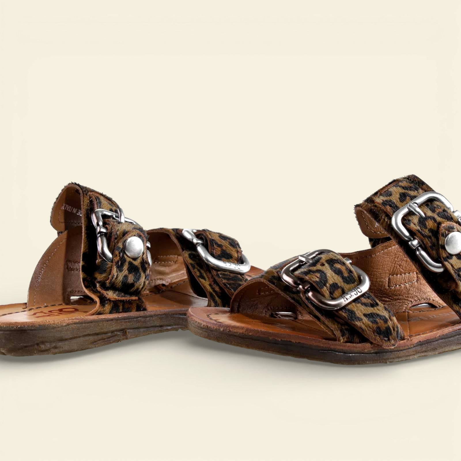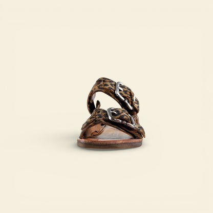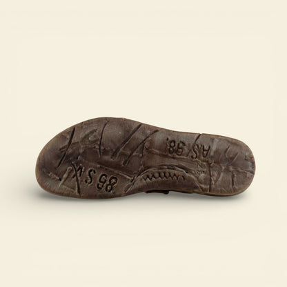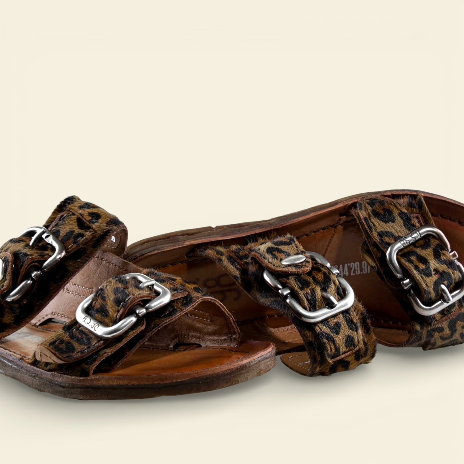 The A.S.98 double-strap flat sandal features a handcrafted leather footbed with two adjustable buckle straps for a secure and comfortable fit. Designed with a low-profile sole and bold hardware details, this style delivers everyday ease with a distinctive edge.