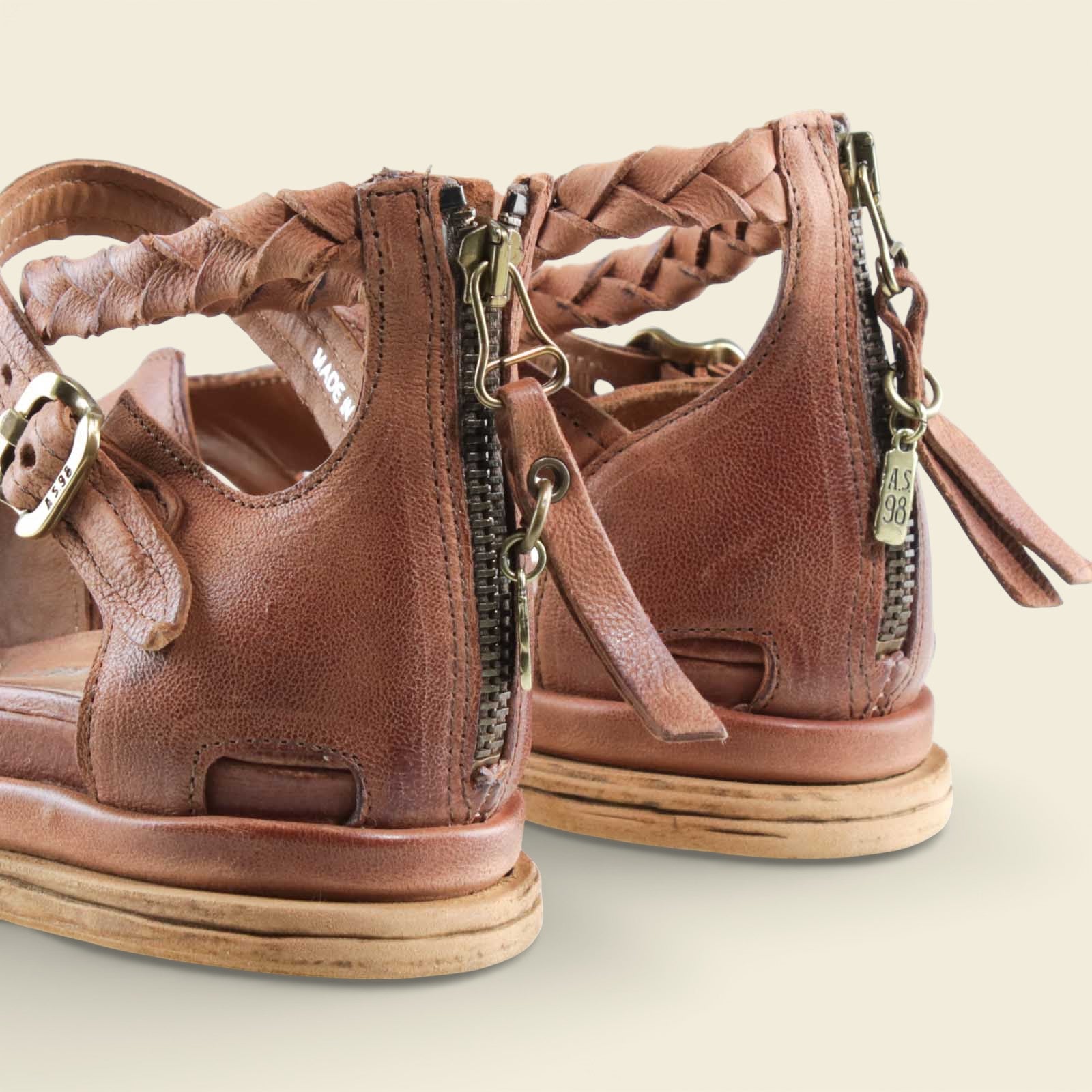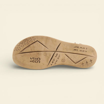 Artfully detailed and effortlessly grounded, the A.S.98 SANTANA sandal brings a handcrafted sensibility to warm-weather styling. Made in Italy and crafted by Italian leather artisans, it features high-quality vegetable-dyed leather shaped into a modern, open silhouette.