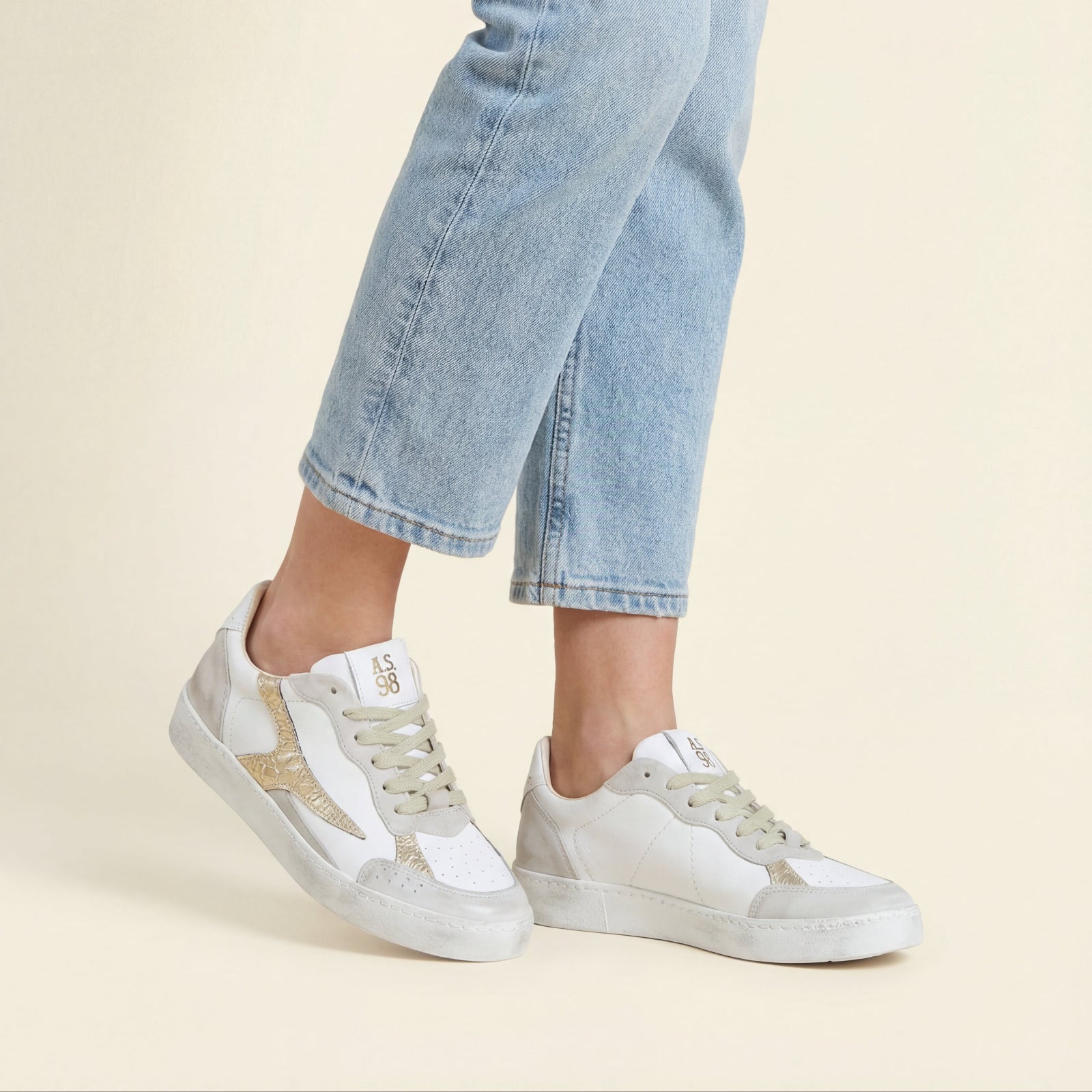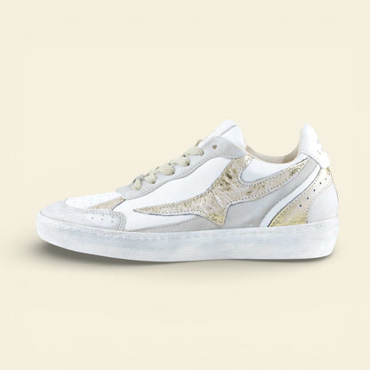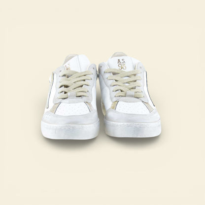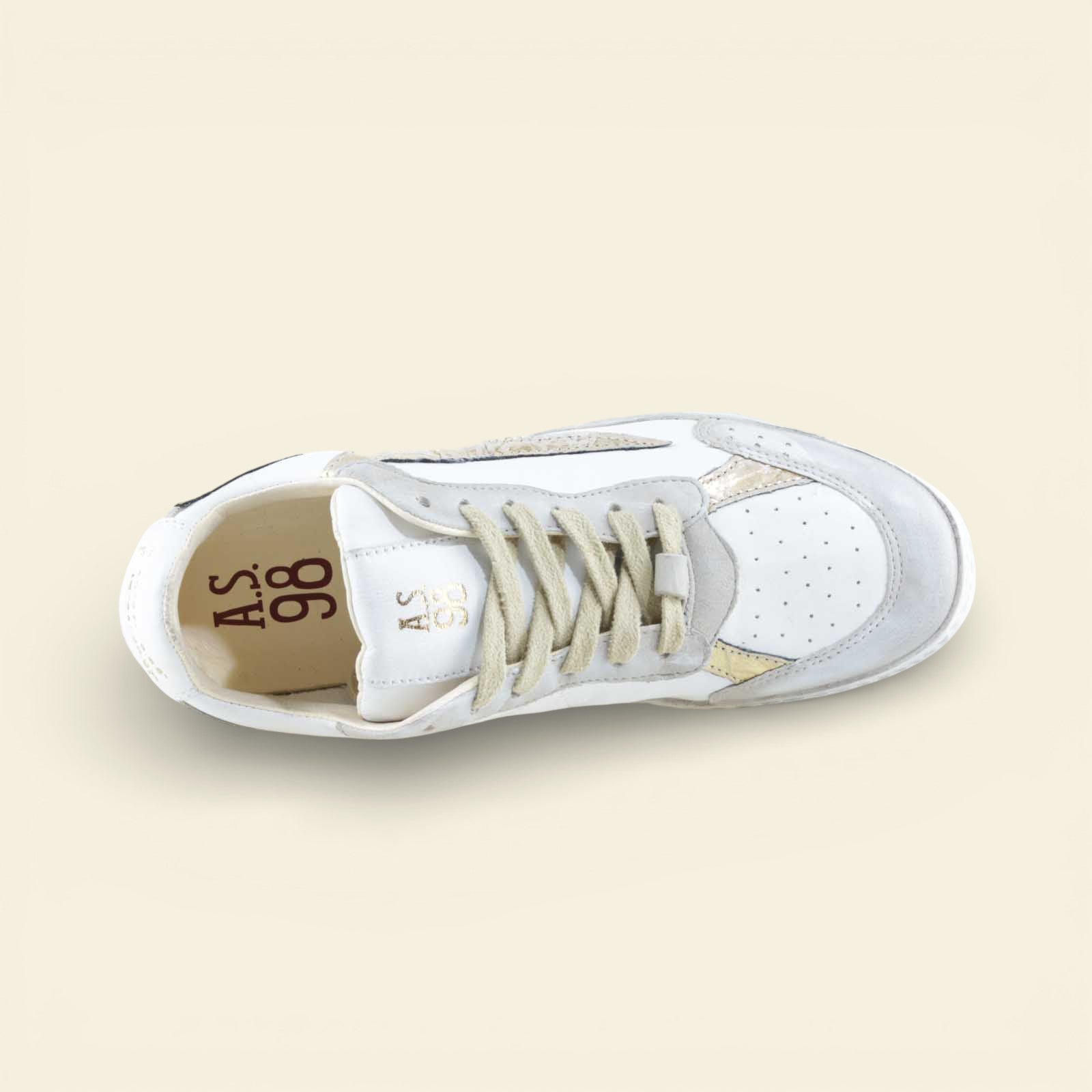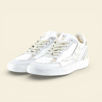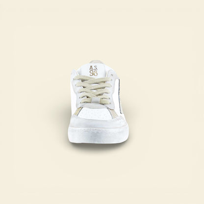 The AURELIA by A.S.98 is a refined Italian leather sneaker designed for everyday versatility. Crafted from premium smooth leather with subtle metallic textured detailing, this low-top silhouette blends sport-inspired structure with elevated craftsmanship.
