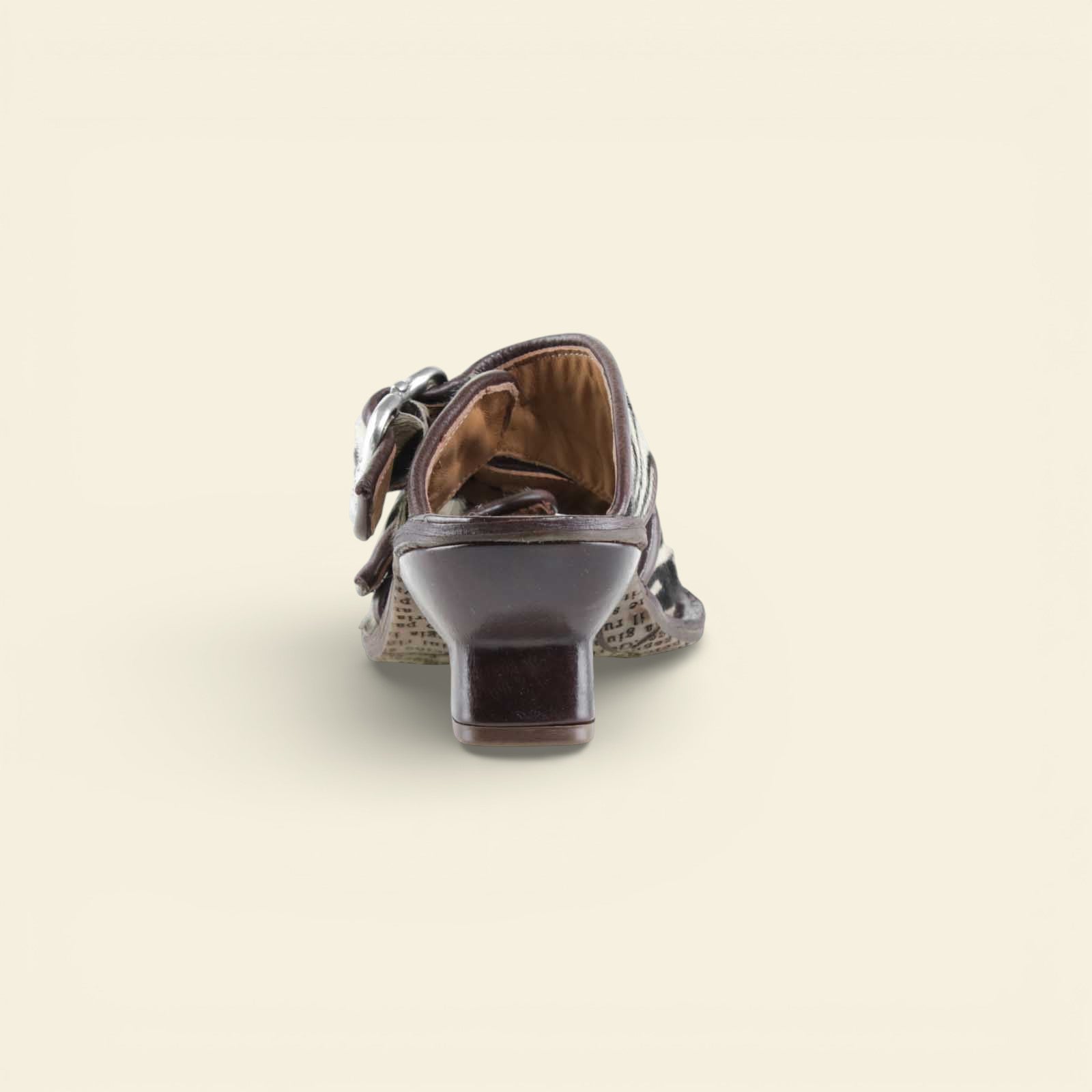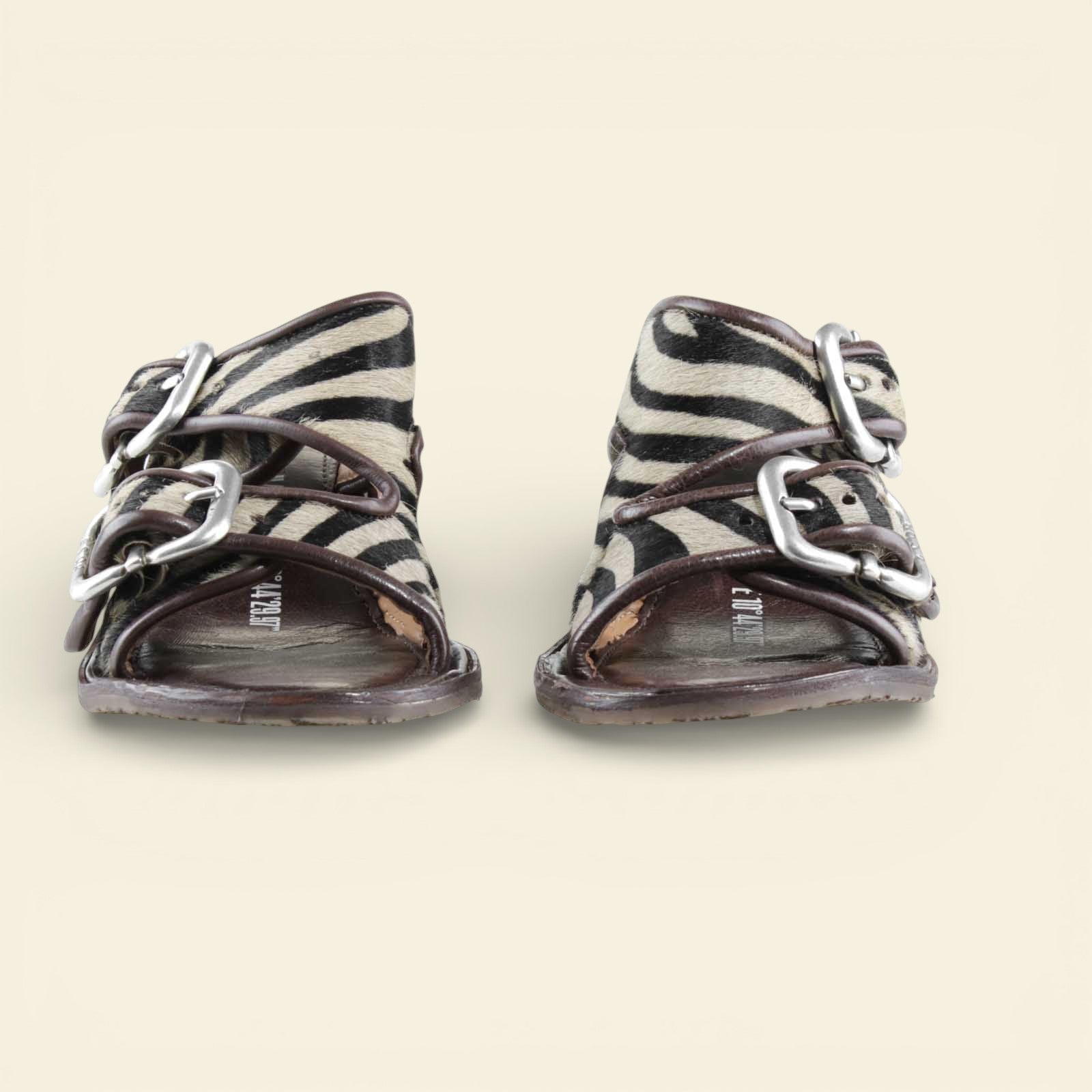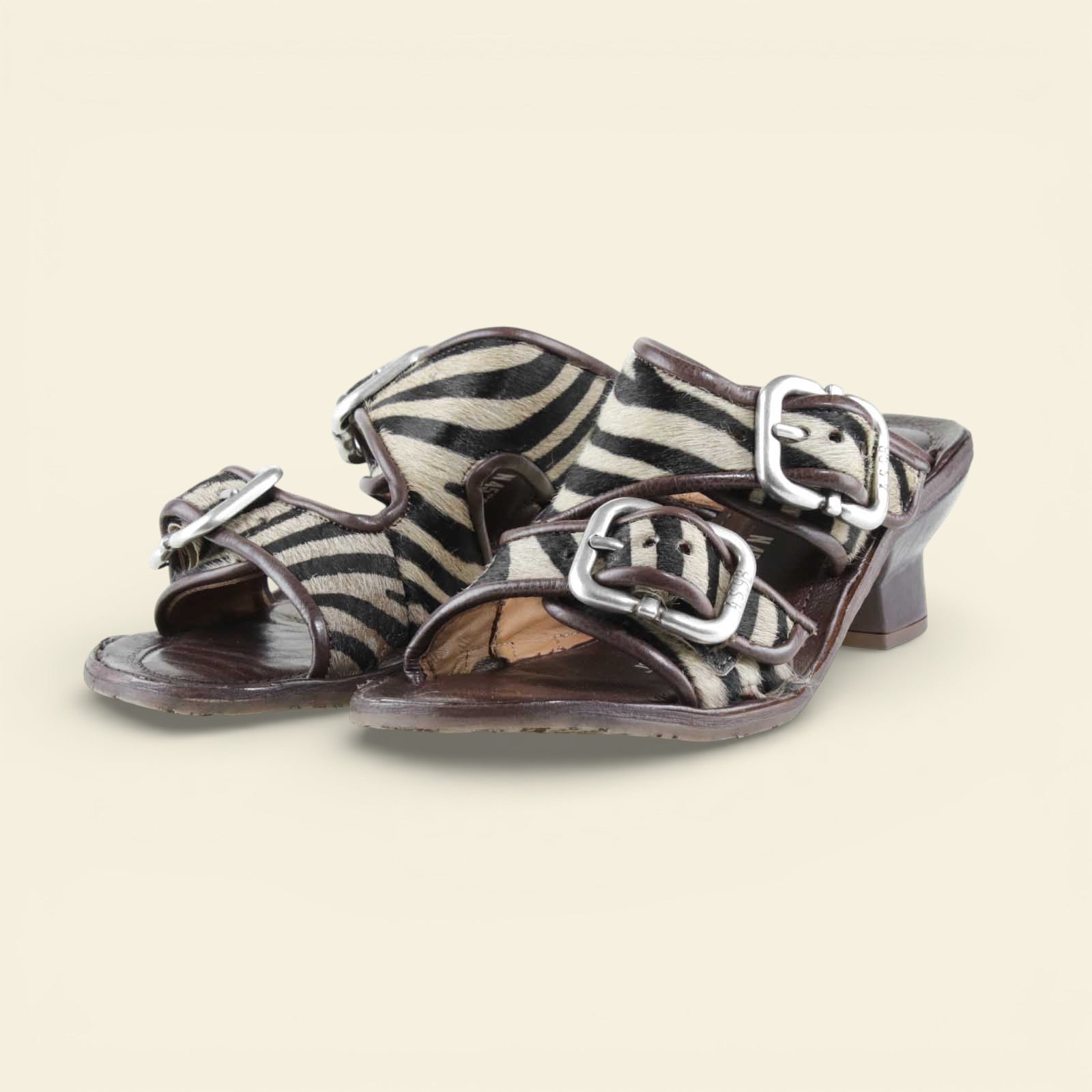 he ZEBRANO by A.S.98 is a bold statement sandal that blends Italian craftsmanship with modern edge. Designed in premium leather and finished with striking zebra-print hair-on detailing, this elevated slide features oversized metal buckle hardware and a sculpted mid-heel for confident everyday wear.