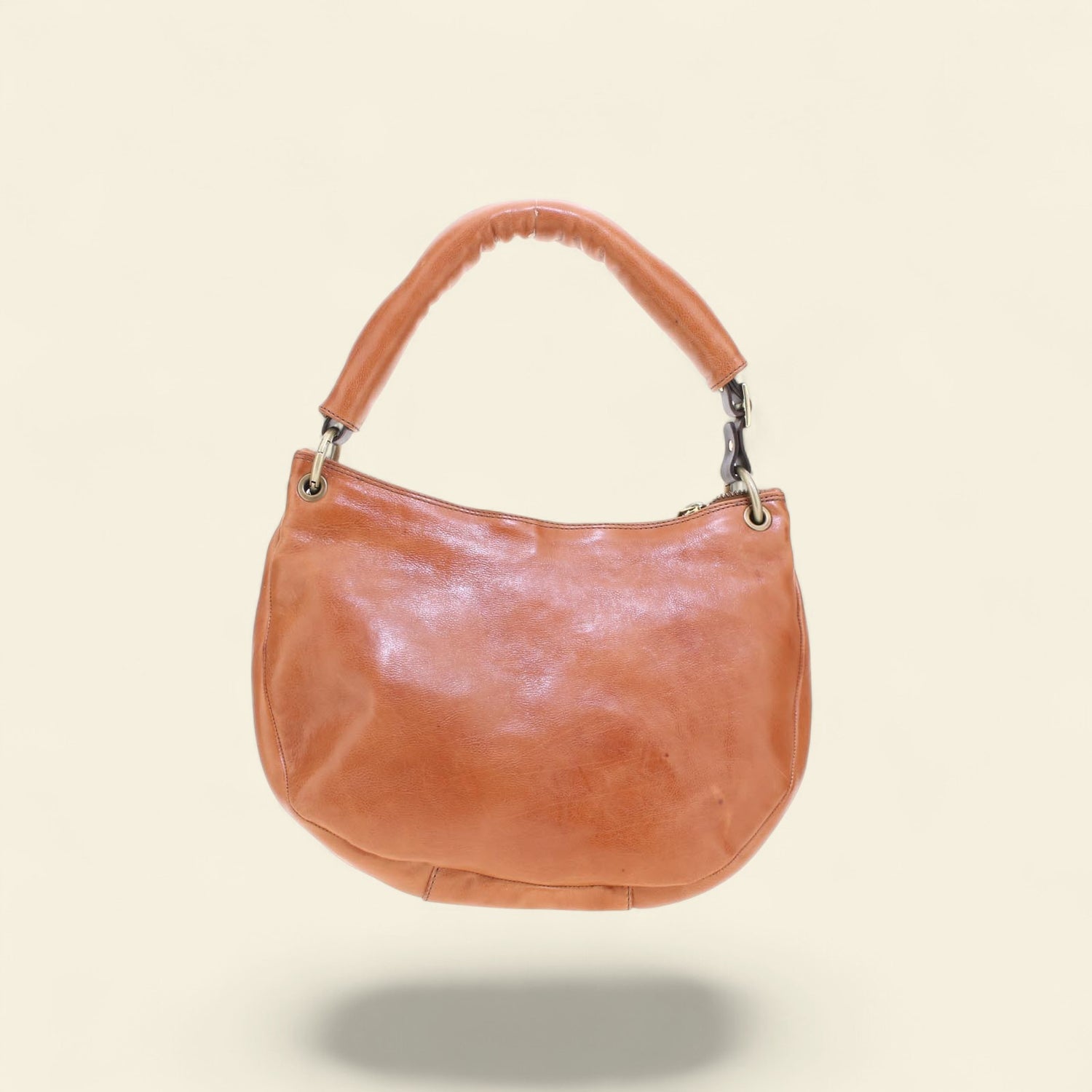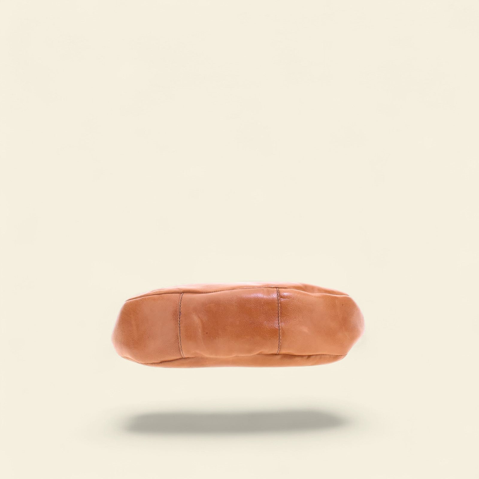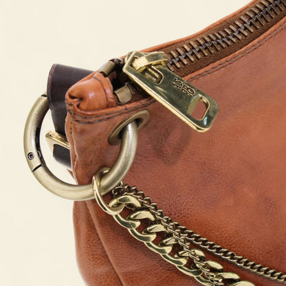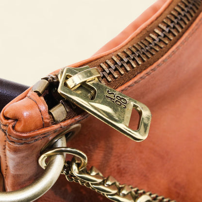 The Jones bag by A.S.98 is crafted from premium Italian leather, combining contemporary elegance with a bold attitude. Its half-moon silhouette and rich cognac tone make it a refined yet versatile choice for everyday wear. The softly structured body and antique brass chains with A.S.98 charm add a distinctive, artisanal touch—signature to the brand’s craftsmanship.